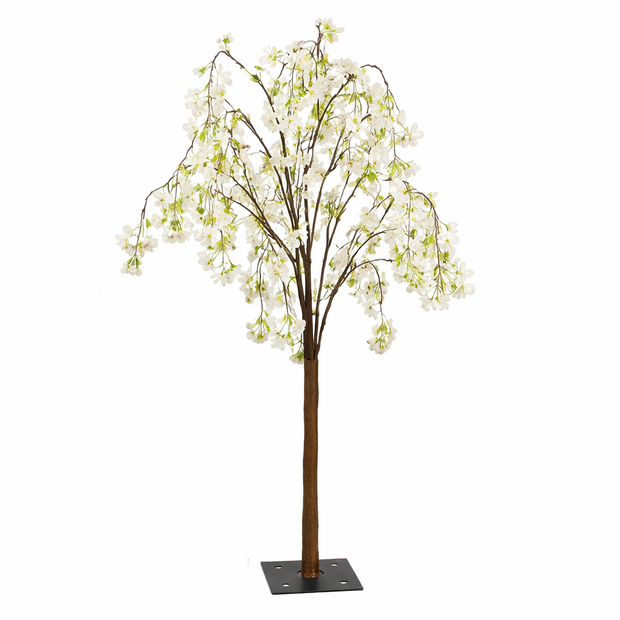 This weeping blossom tree creates a calming, elegant atmosphere with its delicate ivory cream flowers and flowing branches. The sturdy metal base ensures stability, and the included holes allow you to secure the tree in place for added safety—perfect for high-traffic areas or event setups.