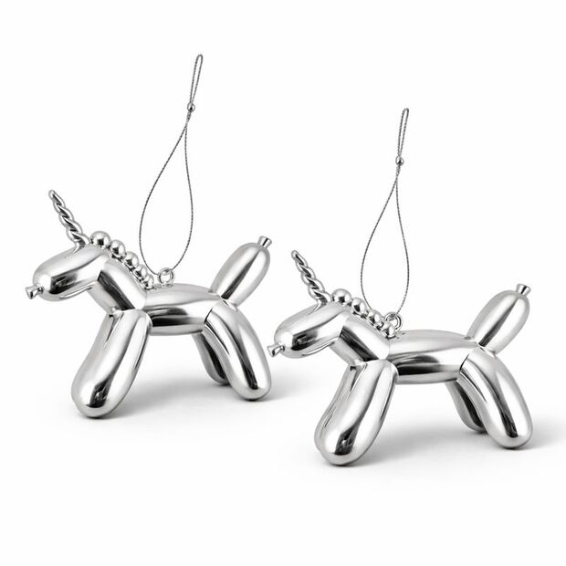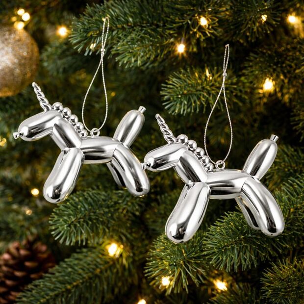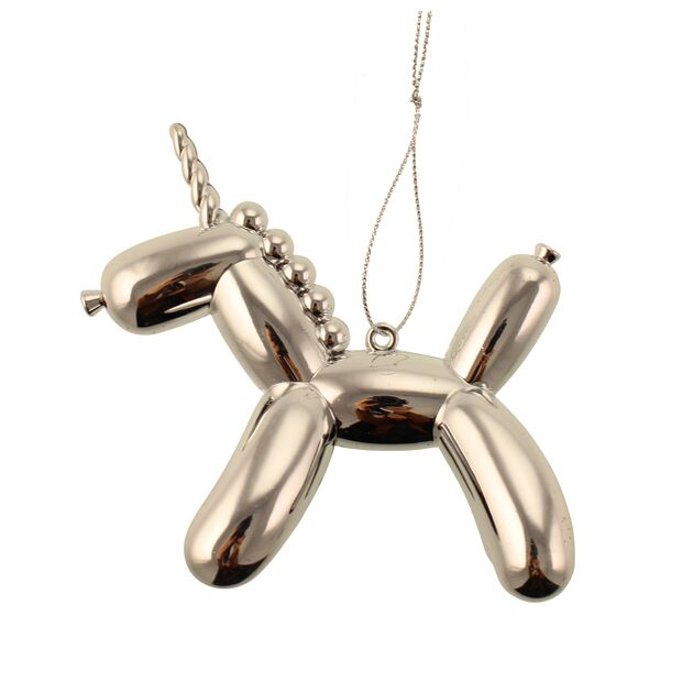 Add a whimsical touch to your festive décor with this Sage Decor® 10cm Silver Unicorn Tree Decoration. Measuring 13cm in width and 10cm in height, this stunning piece is crafted from durable plastic and features a shiny champagne gold finish. Designed to resemble a balloon-modelled unicorn, this delightful ornament adds a playful yet elegant charm to your Christmas tree. It comes complete with a matching silver-threaded cord for easy hanging, making it the perfect blend of fun and sophistication for the holiday season.