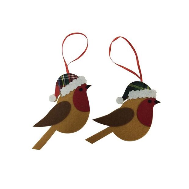 - Charming Design: One of two adorable felt robins wearing festive tartan hats.