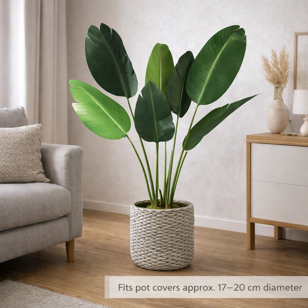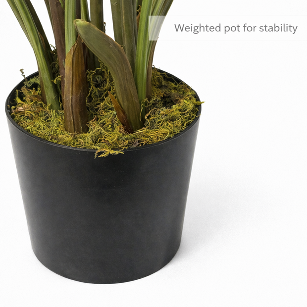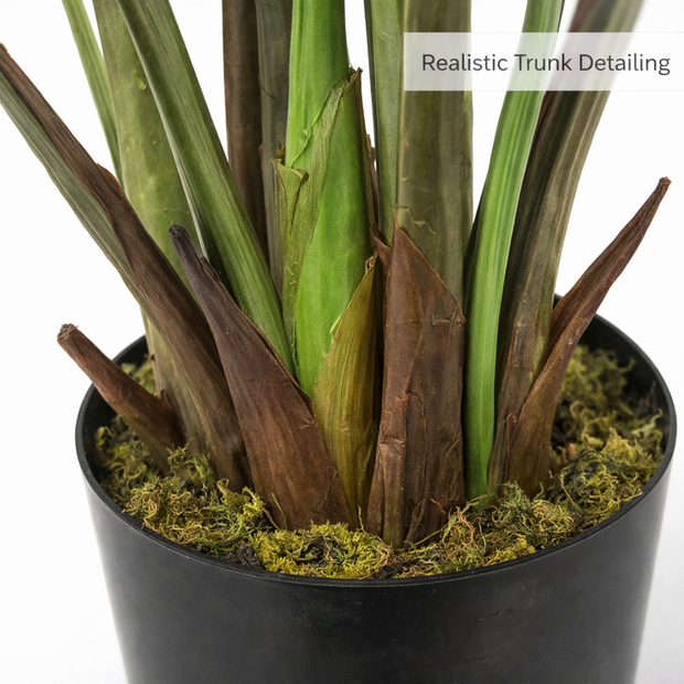 Bring the lush appeal of the tropics indoors with the Floralcraft® Artificial Banana Tree. Standing at an elegant 115cm, this faux plant adds a vibrant, natural aesthetic to any space without the hassle of upkeep. Each banana leaf, meticulously designed with textured green veins, gives a lifelike quality, and the staggered stem lengths enhance realism.