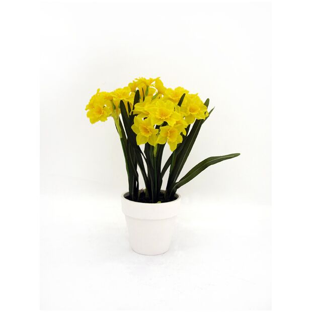 This artificial daffodil is crafted to look realistic and stays vibrant year-round. Its small size makes it ideal for grouping multiple pots together for a fuller display or highlighting a single vase for a minimalistic touch.