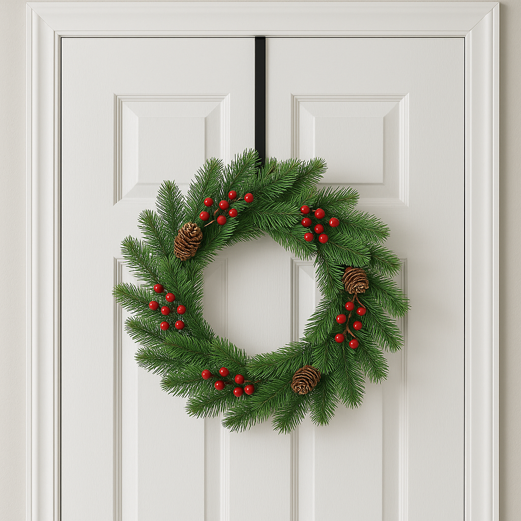 The Black 13″ Over-Door Wreath Hook is designed for a sleek, contemporary look. Perfect for Christmas wreaths, wedding flowers, and year-round displays, this hook provides a secure way to hang décor without damaging your door.