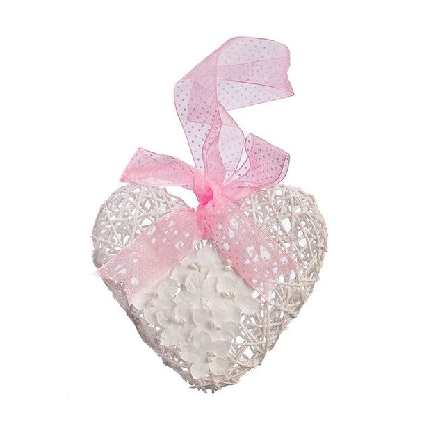 Add warmth and seasonal charm to your home with the Hogewoning Hanging Rattan Heart Decoration. Crafted from natural rattan twine, each 13cm decorative heart features a delicate blossom effect on one side, creating a soft floral finish that suits rustic, country and modern interiors alike.