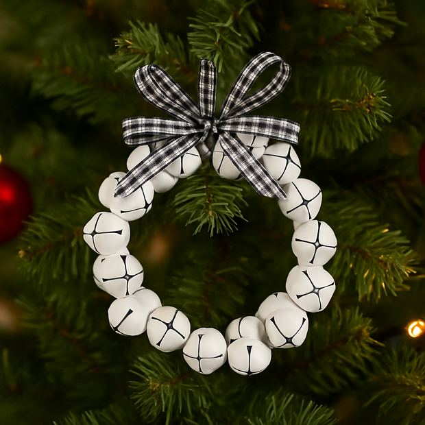 Celebrate the holiday season with the Floralcraft® 13cm Ring of Bells by Michael Dark. This charming ornament features a delicate ring of white bells, each finely detailed for a classic festive look. The addition of a checkered tartan ribbon for hanging enhances its rustic charm, making it a perfect decoration for your Christmas tree, mantel, or anywhere in your home. This timeless piece will bring a touch of elegance and tradition to your holiday decor.