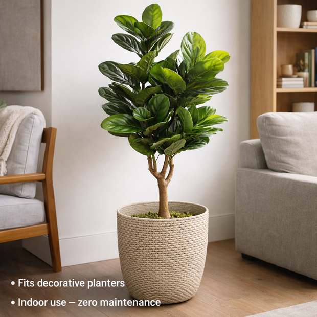 Add a lush, sophisticated touch to your indoor space with the Floralcraft® Artificial Fig Tree. Standing at 145cm, this elegant faux tree is designed to bring a natural ambiance to your home or office without the need for constant care. With lifelike, rich green leaves and a stable, weighted pot, this fig tree delivers both style and functionality.