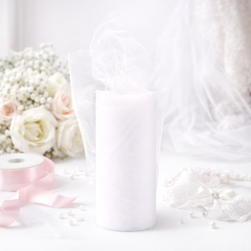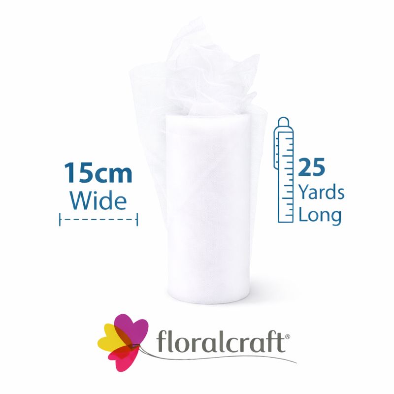 The FLORALCRAFT® 15cm Tulle in White is a delicate, versatile fabric ideal for adding a soft, airy touch to your floral arrangements and event decorations. With a generous length of 25 yards, this high-quality tulle is perfect for a variety of creative projects. Whether you're wrapping bouquets, decorating tables, creating soft drapes for weddings, or crafting bows, this tulle provides a light, elegant finish. The crisp white colour enhances any decor, making it perfect for weddings, parties, or any occasion requiring a graceful and refined look.