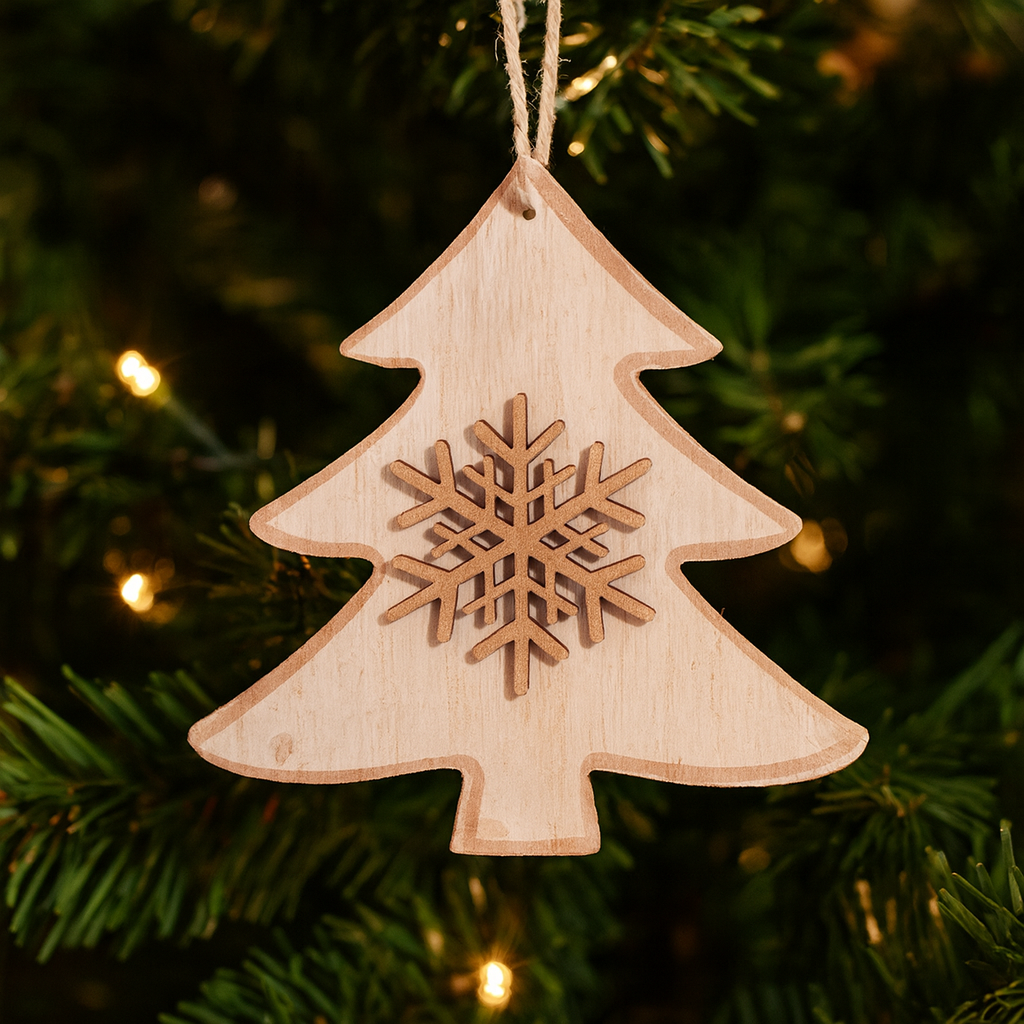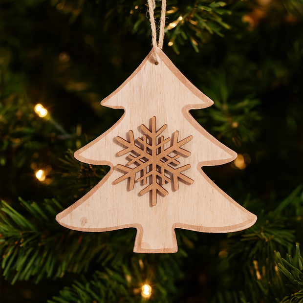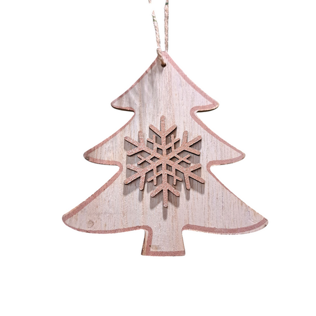Add a charming and festive touch to your decor with the 14cm Hanging Wooden Tree. This small and compact ornament features a stunning 2D design with a glittered snowflake at the center, bringing a touch of winter magic. The faint rose gold outline gives it an elegant, sophisticated look, while the sturdy rope ensures easy and secure hanging wherever you choose. Perfect for adorning your tree, walls, or creating unique holiday displays, this delightful wooden tree combines beauty and durability, making it a must-have for your seasonal decorations.