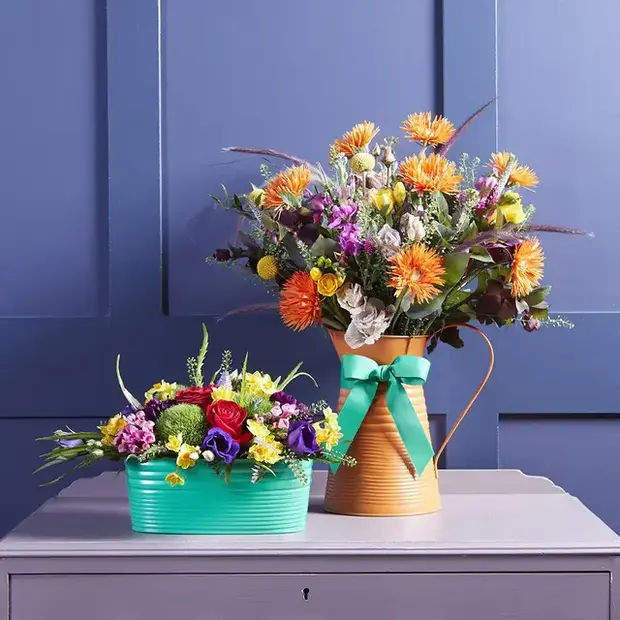 The OASIS® Viva La Vida Fiesta Jug stands at 25cm tall and celebrates the vibrant beauty of life itself. Inspired by modern art, this colourful and dynamic jug features bold patterns and lively hues that infuse energy and joy into any floral arrangement. With its double seal design, this classic tin jug is fully watertight, eliminating the need for a liner and making it quick and easy to use. Perfect for adding a splash of colour and creativity to your home, this jug is a true tribute to living life to the fullest.