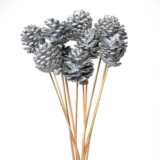 Pre-mounted picks make positioning fast and secure without additional wiring. Approx. 25cm length suits bouquets, wreath rings and table arrangements. The silver glitter finish delivers a polished, seasonal look for premium designs. Suitable for hot glue, florist wire or tape depending on your workflow.