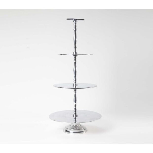 Tall, elegant and made to a very high quality, our 3 tier cake stand has shiny aluminium finish. It's stable base, turned effect stand and the smooth finish of the plates combine to make this stand a stunning centrepeice for any table. Ideal for serving high teas, displaying cupcakes, or mix flowers and candles at weddings, displays and special events.