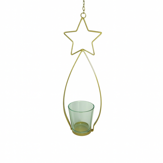 The 32cm Gold Hanging Star Tealight Holder is a stunning and elegant addition to your holiday décor. Crafted with a sleek gold finish. The open design allows the soft glow of a tealight to shine through, casting beautiful light patterns and adding a warm, inviting ambiance to any room. Perfect for hanging from ceilings, doorways, or as part of a festive display, this tealight holder brings a touch of magic and sophistication to your space. Ideal for both holiday seasons and year-round use, the Gold Hanging Star Tealight Holder is sure to be a captivating focal point in your home.