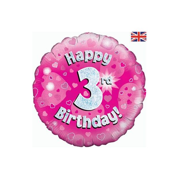 Add a pop of joy to your child’s party with this delightful pink 3rd birthday balloon. Made from high-quality foil, this balloon features a vibrant, metallic pink finish perfect for a girl’s birthday celebration. Inflate easily with air or helium, and its self-sealing valve keeps it full throughout the day. Whether placed as a centrepiece, photo backdrop, or part of a balloon bouquet, it adds playful elegance to any setting. Durable and reusable, it’s a charming choice for both indoor and outdoor birthday décor. Make your little one’s third birthday picture-perfect with this standout party accessory.