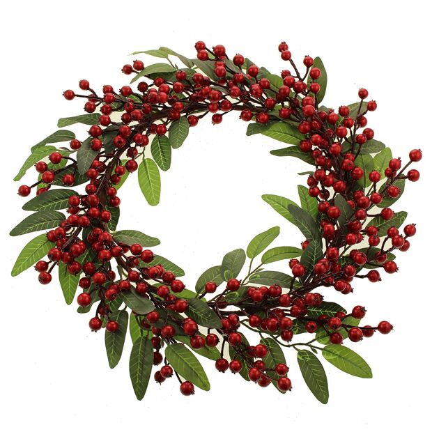 The 40cm Rosehip Wreath is a striking and lifelike decoration that brings the beauty of nature indoors. Adorned with clusters of realistic, glossy red rosehip berries, this wreath is set against a backdrop of rich green leaves, creating a vibrant and festive look. The round wire frame is carefully covered with brown paper, giving it a natural, rustic feel. Whether displayed on a door, wall, or as a centerpiece, this wreath adds a touch of warmth and colour to any room. Its realistic design and vibrant berries make it a perfect addition to your holiday decor or for year-round seasonal charm.