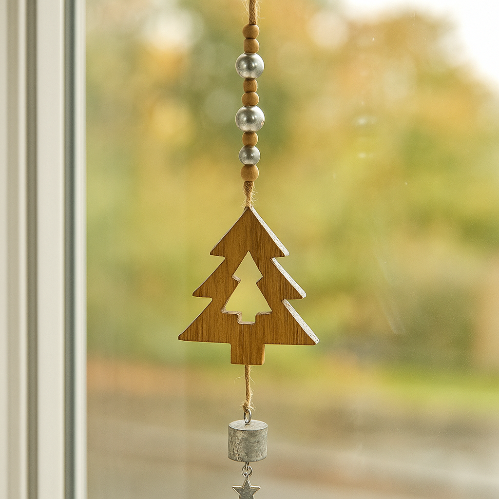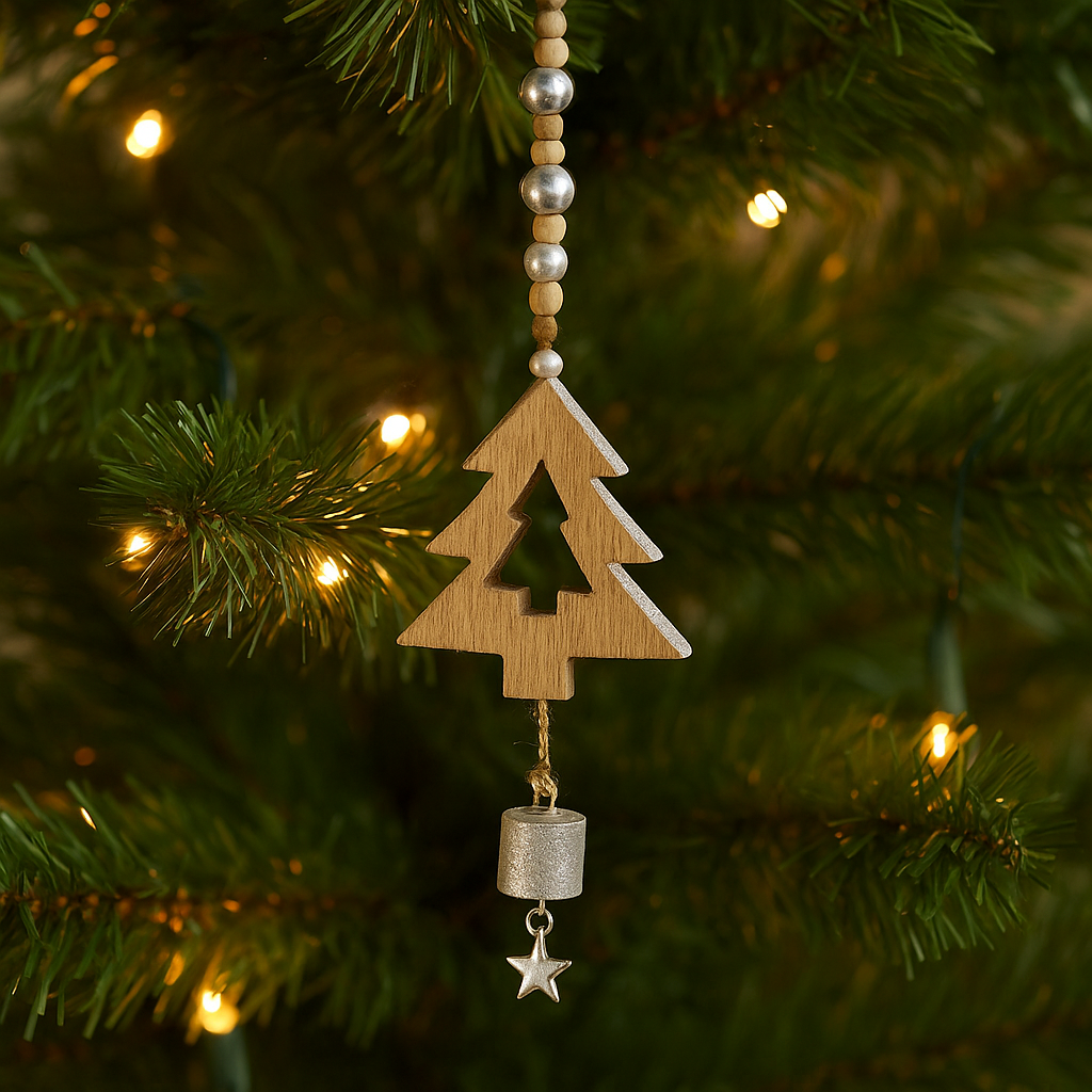 43cm Silver Tree Hanging Wooden Christmas Decoration