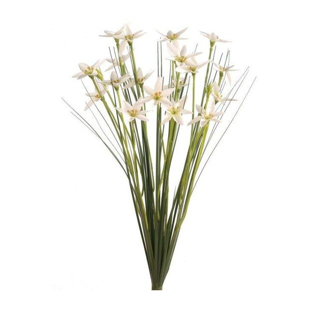 Illuminate your floral arrangements with the 45cm White Artificial Star Flower Bush. This elegant piece boasts 18 faux stems, 2 flower buds, and abundant greenery, suitable for various settings.