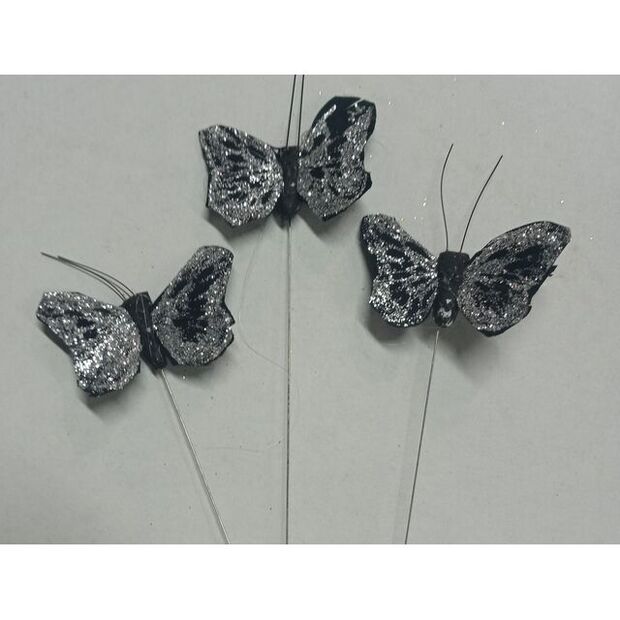 This 4cm feather butterfly in black with silver glitter brings a subtle sparkle and elegant texture to any decorative project. Crafted with delicate feather wings and a shimmering silver finish, it's ideal for enhancing floral arrangements, gift wrapping, event décor, or handmade crafts. Lightweight and easy to attach, it adds a sophisticated accent to both modern and traditional designs. Whether you're styling a centrepiece, dressing a table setting, or creating bespoke crafts, this glittered butterfly delivers a touch of glamour in a compact form, perfect for creative use in weddings, parties, or festive displays.