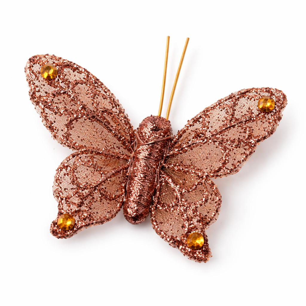 Each butterfly is crafted from lightweight sheer material and finished with shimmering brown glitter, creating a sophisticated, eye-catching look. Their versatile design makes them easy to attach to a variety of surfaces using glue, wire, or thread, allowing you to customize your projects effortlessly.