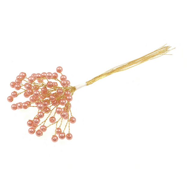 This 5mm pink pearl bunch on gold wire adds a luxurious and romantic accent to floral displays, wedding arrangements, and craft projects. Each bunch includes several stems with glossy pink faux pearls securely attached to flexible gold wire, allowing for easy shaping and placement. The soft pink tone adds elegance while the shimmering finish elevates any design. Whether you're creating bridal bouquets, decorating gift wrap, or enhancing handmade cards, this versatile bunch is a charming addition. Ideal for florists, event stylists, or DIY crafters looking to add a sophisticated touch to their work.