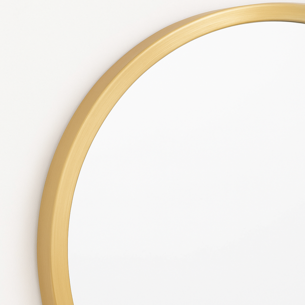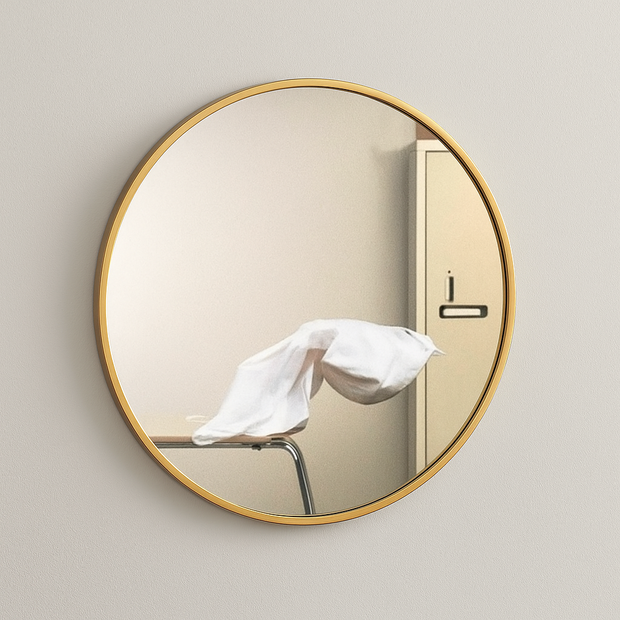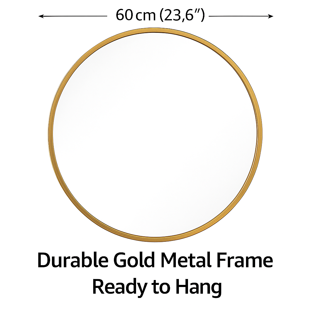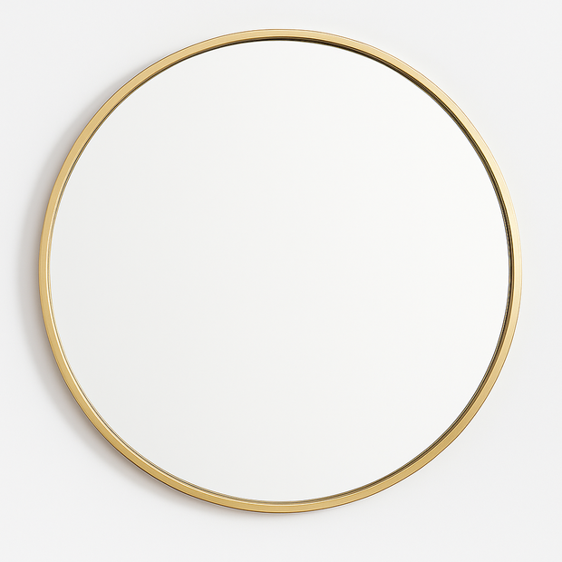 Elegant 60cm round wall mirror with a slim gold metal frame. Perfect for bathrooms, bedrooms, and living rooms. Durable, modern, and ready to hang.