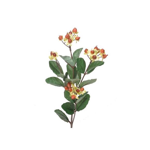 Incredibly realistic looking beautiful fabric hypericum spray28 berries in 4 clustersStem length: 60cmUnit of sale: 1 stem
