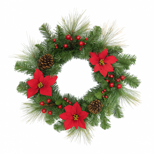 - Lush Seasonal Elements: Features realistic artificial berry clusters, rose hips, pine cones, Spruce, Pinus, and Olive foliage for a full, festive look.