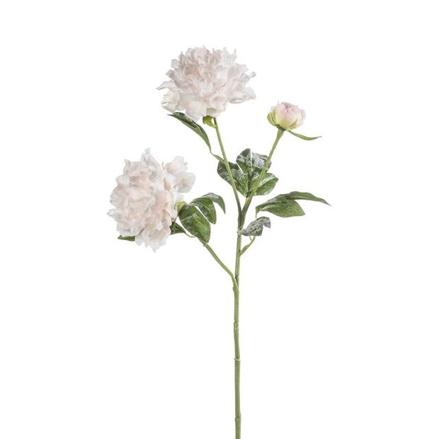 Add a touch of elegance and festive charm to any arrangement with the Artificial Snowy Peony Spray. This stunning spray features two beautifully crafted peony heads in a soft peach hue, complemented by a delicate bud and lush, lifelike foliage. At 63 cm in length, it’s perfect for enhancing floral designs or decorating for special occasions. Each peony head measures approximately 10 cm in diameter, and the spray is accented with sparkling details that catch the light, creating a glamorous, frosted look. Ideal for creating stunning displays, this artificial peony spray brings warmth and beauty to your home or event, no matter the season.
