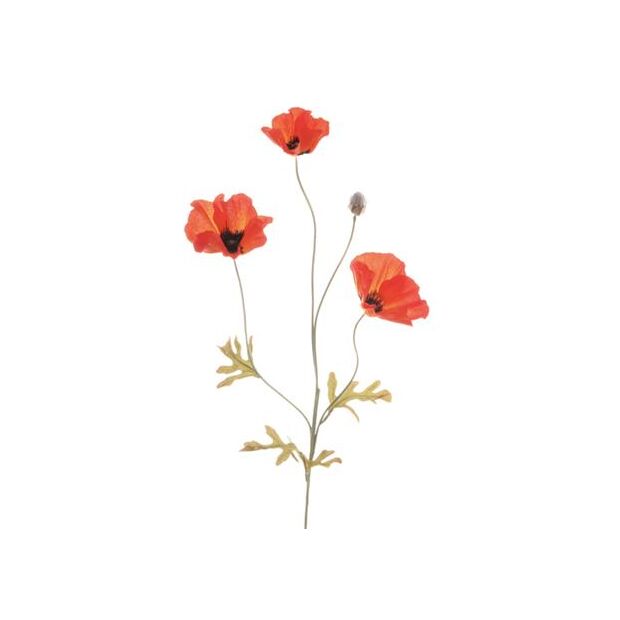 Dark orange artificial field poppy. Each field poppy has 3 open flowers and 1 tight bud.Artificial Field PoppyColour: Dark Orange3 open flowers, 1 tight budStem length: 64cmUnit of sale: 1 stem