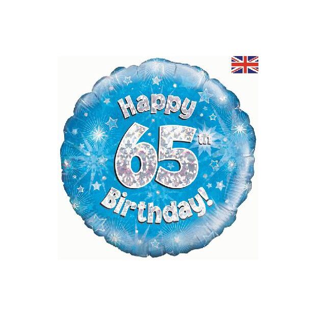 Make someone’s 65th birthday truly memorable with this striking Blue 65th Birthday Balloon. Crafted from durable foil and featuring a bold blue design with a large “65”, this balloon adds an eye-catching pop to any celebration. It inflates to approximately 18 inches and is suitable for air or helium inflation. Whether you're creating a balloon bouquet, a standout centrepiece, or a festive gift topper, this balloon is easy to display and adds a joyful flair to birthday décor. Celebrate a milestone in a big way with a balloon that’s fun, festive, and unforgettable. Ideal for indoor and outdoor celebrations alike.