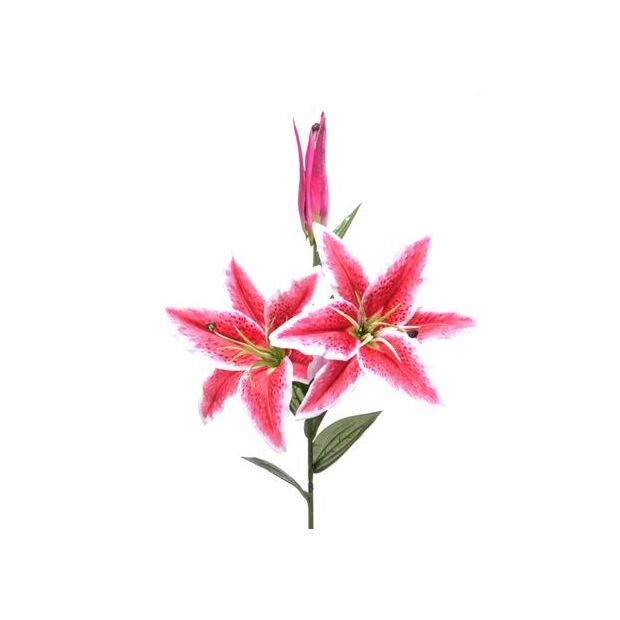 Classic Pink Stargazer Lily. Very realistic looking with 3 flowers to the stem. Oriental Stargazer LilyColour: PinkStem Length: 86cmUnit of sale: 1 stem