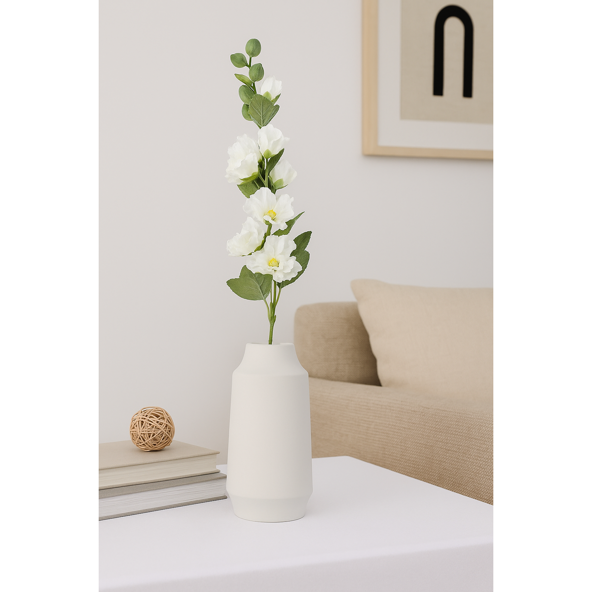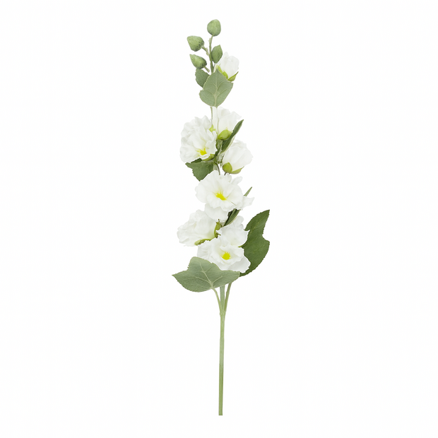 At 83cm in length, the Artificial Hollyhock - White is a stunning addition to any floral arrangement. With its tall, majestic spires, this silk flower will add both height and definition to your displays. The white variety stands out as the perfect choice for creating a striking visual impact, especially in pedestal arrangements. Its lifelike appearance and elegant design make it ideal for both residential and commercial spaces. Elevate your decor with the natural beauty of this artificial hollyhock, requiring no maintenance and providing enduring style.