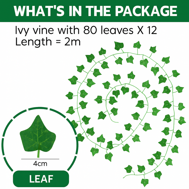 Floralcraft® Artificial Ivy (12 Pack) offers a versatile and cost-effective solution for adding lush greenery to your floral, wedding, or home décor projects. Each vine measures 2m long and includes 80 realistic leaves, giving you a natural look without the maintenance of fresh ivy.
