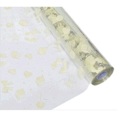 Floralcraft® Babyprint Cellophane Roll (80cm x 100m) - Cream – printed design wrap for floristry, hampers & retail displays. Trade-friendly rolls.