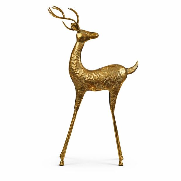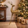 Perfect as a standalone statement or combined with other festive decorations, this gold deer ornament is suitable for both residential and commercial use, including retail displays, events, and styled interiors.