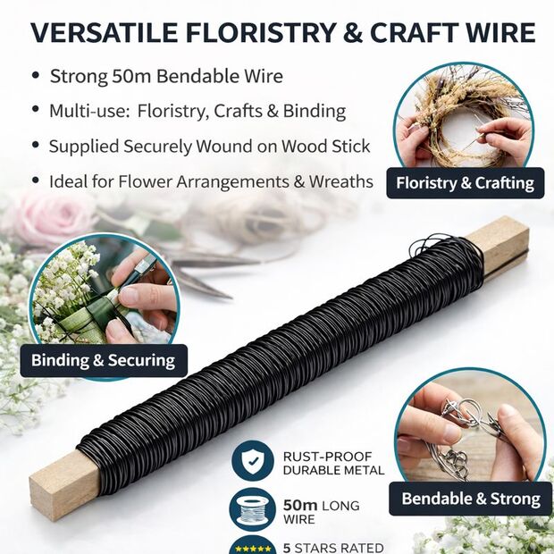 - Strong and flexible wire for secure floral fixing