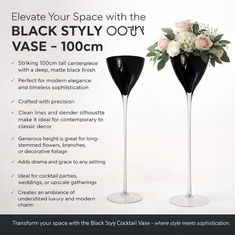 Whether you are a professional florist, event planner, or interior designer, the Black Styly Cocktail Vase is a premium choice for creating high-impact displays that stand out.
