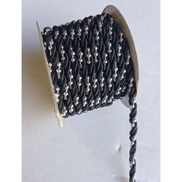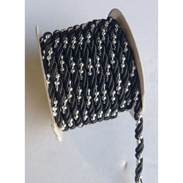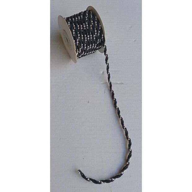 Black Twined Ribbon with Silver Beads