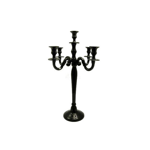 Add sophistication to any setting with the Black Venus Candelabra – 100cm. Standing at a full metre tall, this elegant five-arm candelabra in a matte black finish is ideal for creating dramatic centrepieces. Crafted from durable metal, it’s perfect for weddings, events, or modern home décor. Pair with taper candles or floral additions to customise your style. Its height and sleek design draw attention while maintaining timeless appeal. Whether used alone or adorned, this versatile candelabra elevates table settings or entryways with ease. A must-have piece for anyone looking to impress with bold, contemporary elegance.