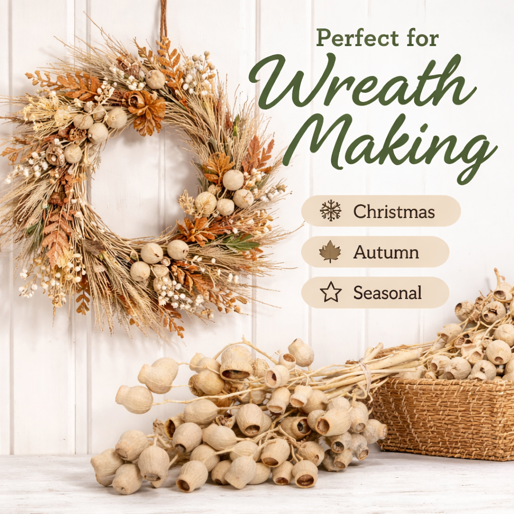This bellgums x10 - bleached is a versatile dried material ideal for floristry, craft work and decorative displays.