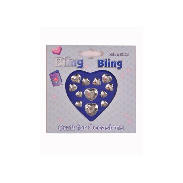 Floralcraft® Bling Hearts in Clear are the perfect decorative embellishment for your craft projects. Each pack contains 12 peel-and-stick hearts in assorted sizes ranging from 8mm to 15mm. Adds a bold touch to any project, making them ideal for scrapbooking, card making, and other artistic creations. Whether you're decorating art, adding flair to gifts, or embellishing special occasion crafts, these hearts are sure to enhance your work with ease and sparkle. Their peel-and-stick design ensures easy application for all types of craft projects.