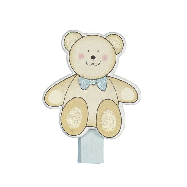 This 4-pack of blue teddy bear peg clips is perfect for adding a sweet, playful touch to baby showers, party decorations, gifts and crafts. Each peg features a charming blue teddy bear embellishment securely attached to a sturdy wooden clip. Ideal for pegging up cards, attaching name tags or simply using as a cute detail in decorative displays. Lightweight, reusable and easy to use, these clips are a must-have for baby-themed events and DIY craft lovers. Bring a joyful, baby-inspired element to your next project or celebration with these adorable pegs.