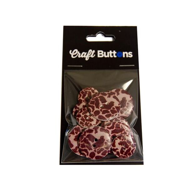 Add a playful touch to your crafts with these delightful Floralcraft® Buttons - Burgundy Animal Print. Made from high-quality wood, these buttons feature a delicate and charming Burgundy Animal Print design, perfect for a variety of projects. Each pack contains 15 buttons in two different sizes (2.5cm and 1.75cm), allowing for versatile use in your creative work. Whether you're designing floral arrangements, card making, or adding a whimsical detail to any project, these wooden Burgundy Animal Print buttons are sure to bring warmth and personality to your creations. Ideal for crafts and nature-inspired designs.
