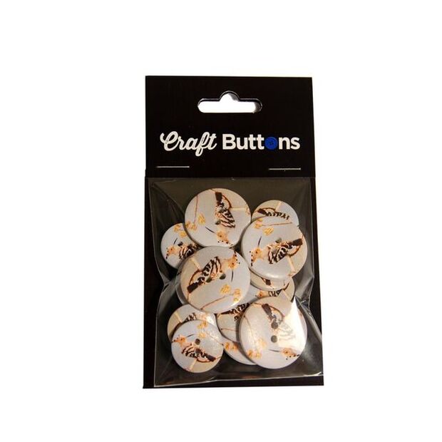 Add a playful touch to your crafts with these delightful Floralcraft® Buttons - Hoopoe Birds. Made from high-quality wood, these buttons feature a delicate and charming Hoopoe Bird design, perfect for a variety of projects. Each pack contains 15 buttons in two different sizes (2.5cm and 1.75cm), allowing for versatile use in your creative work. Whether you're designing floral arrangements, card making, or adding a whimsical detail to any project, these wooden Hoopoe Bird buttons are sure to bring warmth and personality to your creations. Ideal for animal-themed crafts and nature-inspired designs.