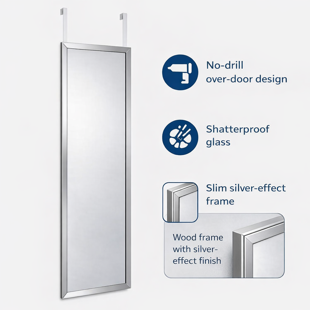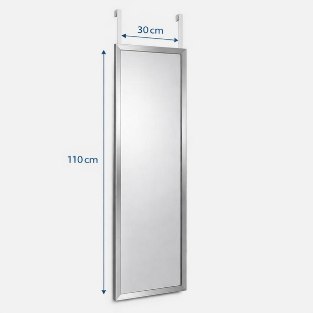 Add a touch of elegance with the Catalina Over Door Mirror in Silver. Measuring 30×110cm, this slim design provides a full-length reflection without taking up wall space. Simply hang it on the back of a door for a quick and convenient fit.