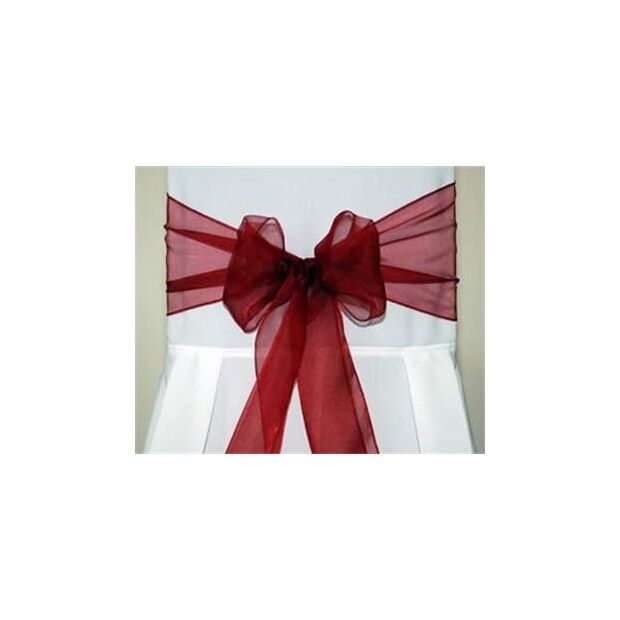 Pack of 5 elegant Burgundy organza chair sashes. Available in a wide range of bold and pastel colours.