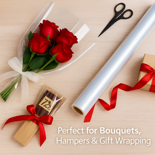 Floralcraft® Cellophane Roll - Clear (50cm x 30m) is a premium quality cellophane wrap designed for professional florists, gift shops, and event stylists. Crafted to deliver exceptional clarity and strength, it’s perfect for creating beautiful, high-impact presentations that stand out.