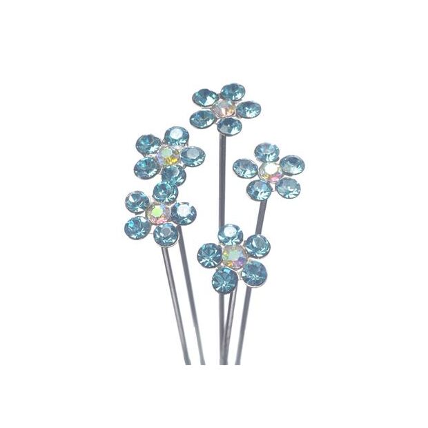 Swarovski Crystal Pixie Turquoise pins - six Swarovski crystals on a steel pin. Perfect for decorating bridal tiaras or wedding corsages.