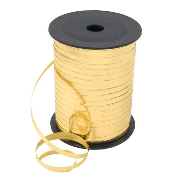 OASIS. Curling Ribbon - Metallic Gold. A wide range of colours to choose from, also available in metallic and holographic finish. Supplied on a reel with protective plastic flange. Ideal for creating decorative bows and for decorating and attaching to balloons.