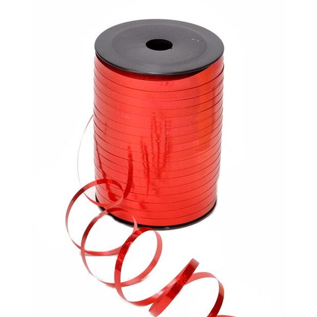 OASIS. Curling Ribbon - Metallic Red. A wide range of colours to choose from, also available in metallic and holographic finish. Supplied on a reel with protective plastic flange. Ideal for creating decorative bows and for decorating and attaching to balloons.