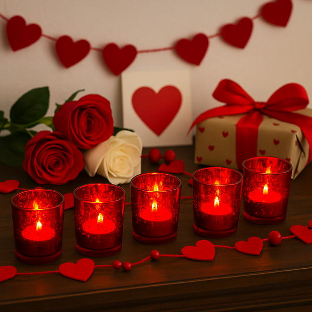 - Votive Candle Holders Set: Includes 6 red-coloured glass holders, each measuring 5.5cm in diameter and 6.5cm in height. (Candles not included)