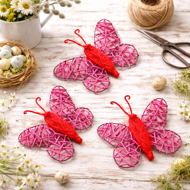 Add a natural, decorative flair to your projects with the Sisal & Twig Butterfly in Pink – perfect for adding a delicate, nature-inspired accent to any occasion.